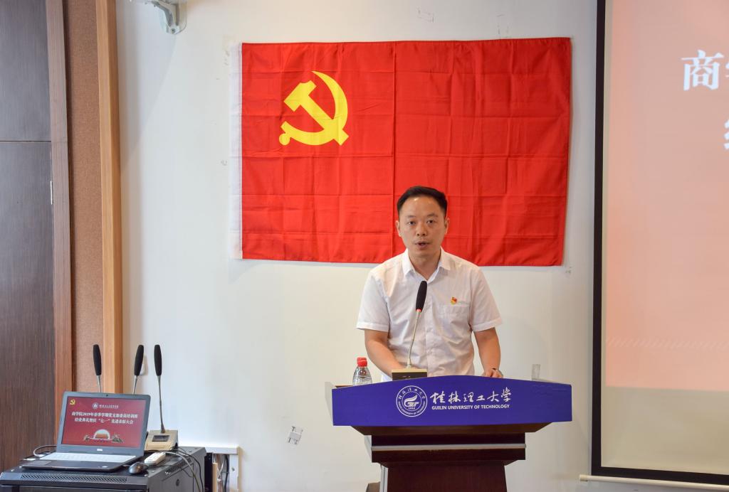 为表彰先进、树立典型,6月26日下午,学院党委于大学生科技园众创空间二楼会议室隆重举行2019年春季学期党支部委员培训班结业典礼暨庆“七一”先进表彰大会。学院党委书记周章明,党委副书记、院长连漪,党委委员、副院长蒙永亨、副院长侯治平,党委副书记沈菲菲,学院党委委员赵瑞峰以及副处级组织员黎超业老师出席会议,学院全体党员参加会议,会议由学院党委副书记沈菲菲主持。
